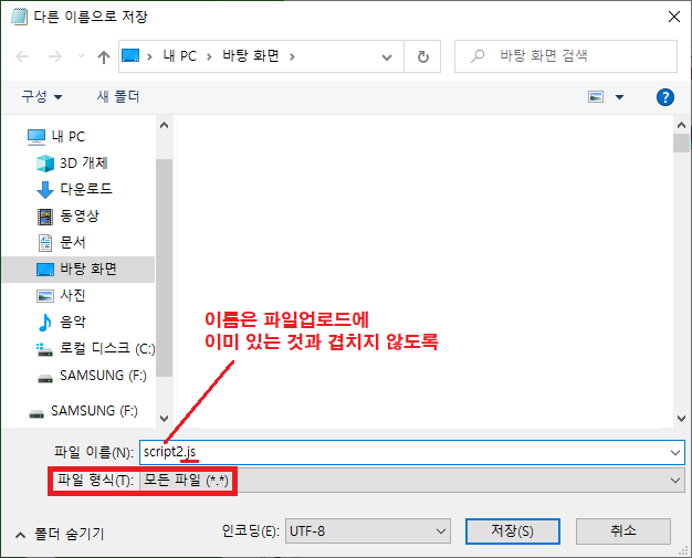 파일 형식을 모든 파일 (*.*)로 설정하고