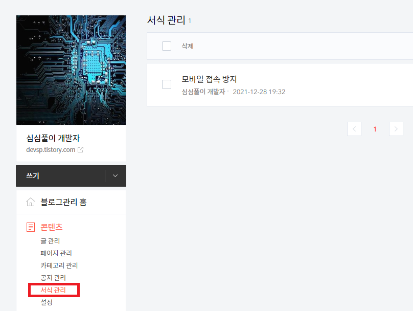 티스토리 관리자 페이지 > 꾸미기 > 스킨편집 >