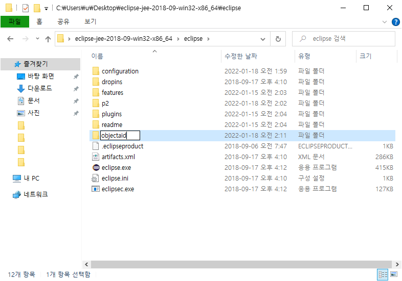1. eclipse.exe가 있는 이클립스 폴더에서