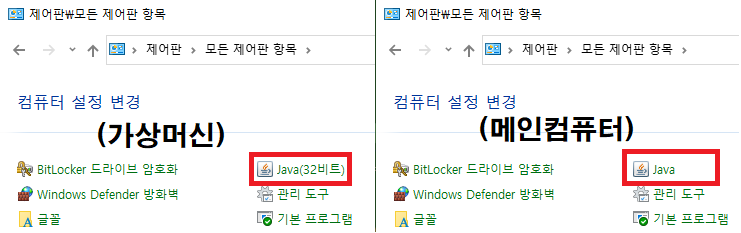 나중에 메인컴퓨터의 제어판을 확인해보니